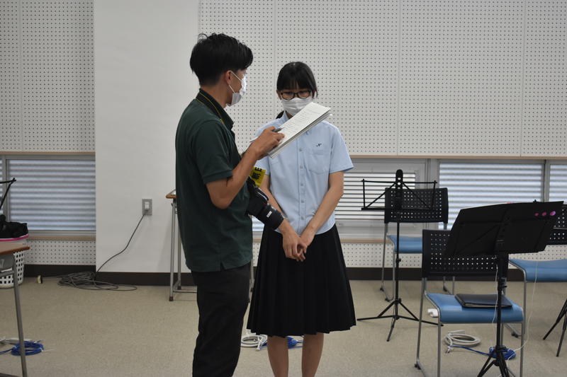 この揮毫にあたっては、被災地にある高校の書道部員が揮毫するということで、当日はテレビ局や新聞社、地元メディアなど多くの方々に取材に訪れていただきました。記者の方々による谷口さんや書道部顧問の土肥先生へのインタビューがおこなわれたり、看板を掲げての写真撮影などがありました。