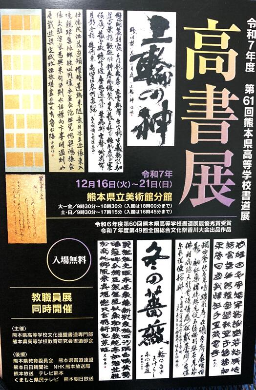 県内の書道部部員の力作が並ぶ、熊本県高等学校書道展が12月16日から開催中です