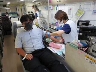 あさぎり町役場の玄関前での献血バスによる献血の受付手伝いをさせていただきました。今回も免田ライオンズクラブからお声掛けいただいたものです。