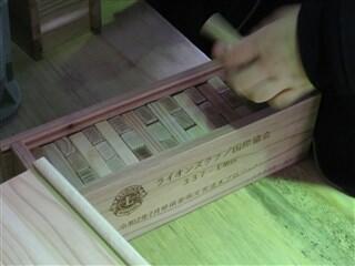 この活動は、ライオンズクラブ国際協会337-E地区(熊本県のライオンズクラブ)の呼び掛けに応じて参加したものです。約2年半前に起こった「令和2年7月豪雨」によって主に人吉球磨地域から八代海に流されていった流木を材料としてジェンガを作り、それを熊本県内の全ての保育園と幼稚園に贈ろうという取組です。