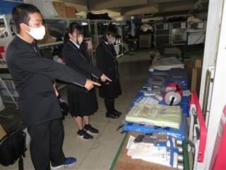 終了後には、災害救助物資保管倉庫の中を見学させて頂きました。災害が起こったときに被災地に届ける「日用品セット」や「安眠セット」、「毛布セット」等を見せていただくとともに、炊き出しに使用する「大釜セット」も見学しました。