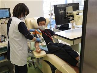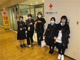 下通り献血ルームで呼び掛けの手伝い! 投稿日時 : 2023/04/11 投稿者5 4月9日(日) ボランティア部員4名を含む5名の生徒達が、下通り献血ルームを訪れ、献血呼び掛けの手伝いをしました。 うち3名は献血にも挑戦し、検査や問診の結果、うち2名が献血をすることができました。2名とも現在16歳でしたので、200mlの全血献血を初めて体験しました。