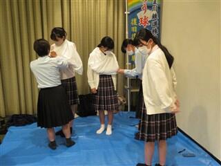 今回は、熊本県高等学校文化連盟(高文連)の国際・ボランティアJRC専門部のメンバーとしての取組でしたので、参加した部員達は全員、左肩に青少年赤十字バッジを付けて活動に取り組みました。