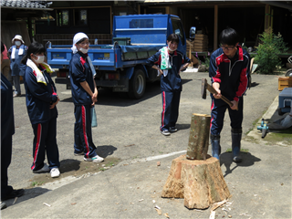 ボランティア部としての災害ボランティア活動は昨年度に2回ありましたが、今年度は今回が初めて。今回の活動では初めてボランティア部員が企画しました。マイクロバスや昼食の手配等は免田ライオンズクラブ様に御世話になり、現地での具体的な作業内容はオープンジャパン様に御指導いただきました。