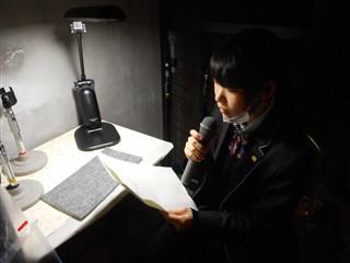 吹奏楽部定期演奏会陰アナウンス 投稿日時 : 2020/02/24 投稿者6 2月24日(月・祝)、須惠文化ホールで行われた吹奏楽部の定期演奏会で、 2年生の土肥さんが陰アナウンスを行いました。 客席から姿は見えないながらも、演奏会の進行を陰から支える大切な役目をさせていただき、 大変勉強になりました。 舞台袖でアナウンスの練習をする様子 土肥さんのいる舞台袖からのステージ風景 陰アナウンスをする様子