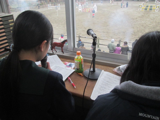 ・チャリティー馬術大会1日目【放送部】(2018/12/8) 投稿日時 : 2018/12/08 学校サイト管理者 ・チャリティー馬術大会1日目【放送部】(2018/12/8)12月8日(土)第24回九州地区高等学校自馬選手権大会 南稜チャリティー馬術大会を開催しました。1日目は4つの競技を行い、たくさんの企業や団体から協賛をいただき、ありがとうございました。小学1年生から、70歳代まで幅広い選手が出場。後援会の炊き出しなどもあり、天候にも恵まれたくさんの応援があり素晴らしい大会となりました。生徒会、放送部などの協力をいただきました。写真は、【放送部】のアナウンス。