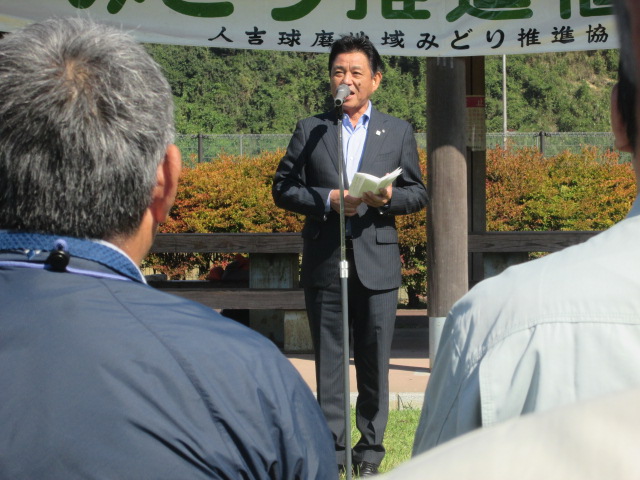 ・人吉球磨地域植樹祭【同窓会】(2018/10/13) 投稿日時 : 2018/10/14 学校サイト管理者 ・人吉球磨地域植樹祭【同窓会】(2018/10/13)10月13日(土)人吉球磨地域植樹祭が、球磨村総合運動公園で行われ、球磨林業奨学会の堀川会長、はじめ、緑の少年団が参加して、行われました。クスノキ、ツバキ、サザンカを植樹しました。堀川会長が植樹緑の少年団らとクスノキを植樹ツバキ、サザンカを植樹緑の少年団山田小学校 緑の少年団 緑化活動表彰 國武局長から球磨村村長 柳詰村長 【同窓会 副会長】球磨地域振興局 國武局長