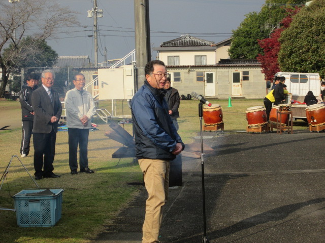 開会の前に、神殿太鼓の演舞があり、同窓会長の鶴田会長から、法被(はっぴ)の贈呈がありました。神殿太鼓の演目は、「肥後大地の詩(ひごだいちのうた)」