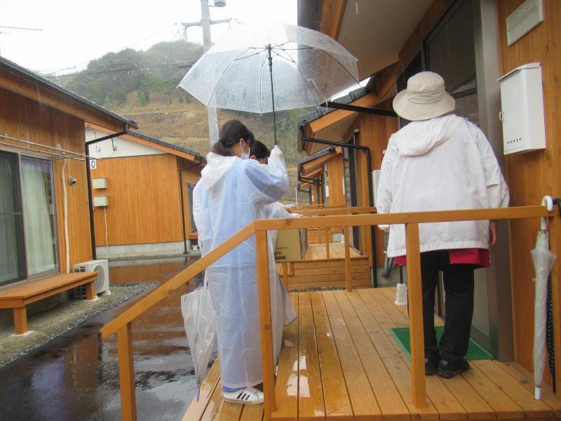 そして、それを仮設住宅に入居されている方々へ配布し、お菓子を通して元気を贈りました。