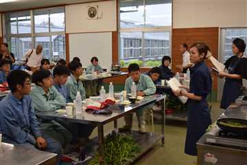第2回ダイズ100粒運動 投稿日時 : 2018/10/10 学校サイト管理者 第2回ダイズ100粒運動を行い、講師には、おとうふ ゆば料理 大豆の華 北野集 様を招きました。 はじめに7月に播種をしたダイズの収穫(エダマメ)を行いました。実の肥大も上々で、直ぐに茹でて美味しくいただきました。 その後、豆腐の凝固剤の違いについて学びました。安い豆腐と高い豆腐は何が違うのか?何に差があるのか?試食や豆乳に凝固剤を入れて豆腐を作る体験を通して、わかりやすく学ぶ事ができました。 本日は(株)親父のガンコ豆腐の牧野様をはじめ、(有)島原食品の尾﨑様、(有)尾﨑食品の植木様にもお手伝いをいただきました。ご協力いただいた皆様、ありがとうございました。