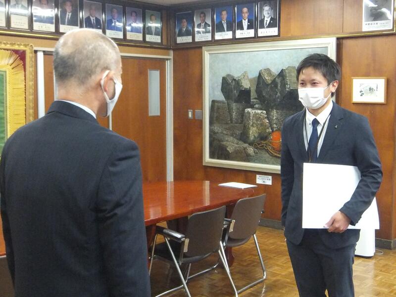 先生も受賞 投稿日時 : 2021/11/02 学校サイト管理者 本校の中村友行先生が、令和3年度(2021年度)熊本県教育功労(優秀教職員)表彰フレッシュ・キャリア部門(48歳以下)を受賞されました。 この表彰は、学校教育において、積極的な取組を行い、顕著な成果をあげた教職員を表彰するもので、高校教育課の重岡課長が来校され授与されました。また、職員朝会においても全職員に紹介しました。 中村先生の学校農業クラブにおける学習指導や進路における公務員指導などの功績が高く評価され今回の受賞となりました。 中村先生の今後の更なる活躍を期待しております。