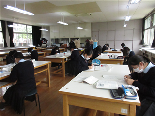 1年生・被服実習スタート☆ 投稿日時 : 2020/05/25 投稿者5 1年・生活経営科「ファッション造形基礎」の授業では ようやく被服実習をスタートすることができました。 まずは4級検定に合格できるよう、基礎縫いの並縫い、 まつり縫い、半返し縫いの確認をしました。 4ミリの長さや5ミリの間隔など決まっているので それに合わせるようみんな真剣です。 授業後の感想では「上達するように家でも練習したい」など、 みんなやる気にあふれています☆