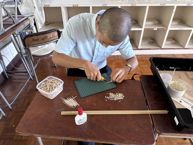 授業で学習した「トラス」を構造内に取り入れて、強度を上げます