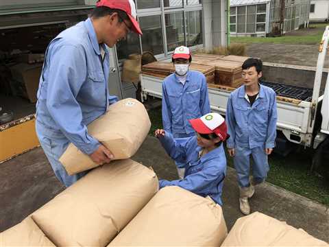 南稜米の調製が終わりました! 投稿日時 : 2018/10/16 学校サイト管理者 10月15日(月)、南稜米の調製作業が終わり、冷蔵庫へ玄米を運びました。今年は昨年よりも豊作で、100袋を超える玄米を7名で運びました。 「重い、重い」と言いながら持ち方を工夫してで運びました。終わった後、「よけまんがあればいいのに」と。確かに(笑)。