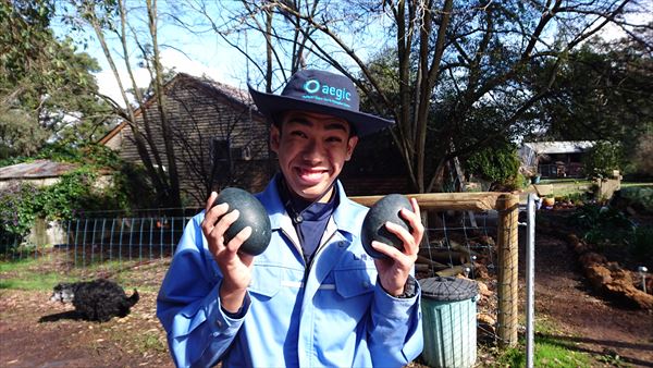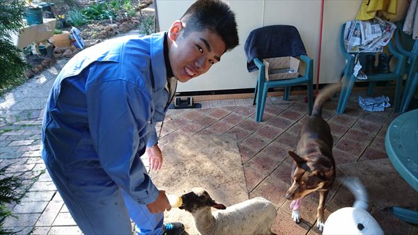 普通科総合コース2年の前田君と、八代農業高校 園芸科学科3年の黒木君は、Jhon Calnanさんの農場で研修。Calnanさんの農場には、牛、ヒツジ、山羊、エミュー、ザリガニの仲間のヤビーなどがいます。