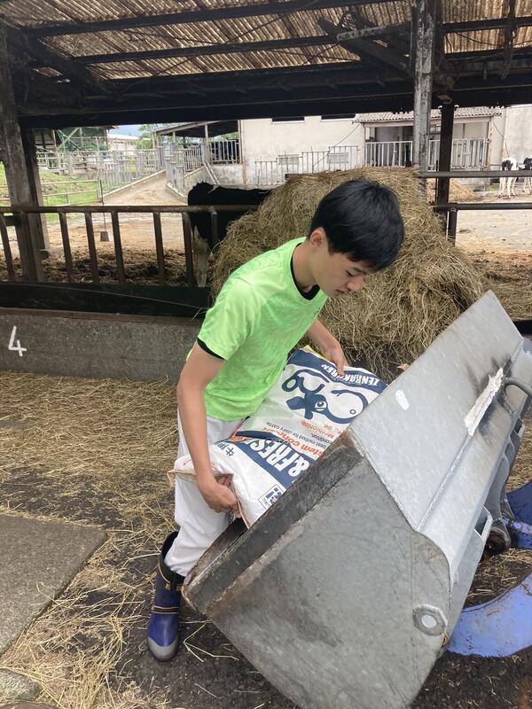 【生活経営科・総合農業科】頑張る当番実習生 投稿日時 : 2022/05/12 投稿者5 少し時間が経ってしましましたが、ゴールデンウィーク真っ只中でもあった祝日に頑張る当番実習生がいました。その様子をぜひご覧ください。 牛部の3年生も手伝いにきてくれます。とても頼もしいです