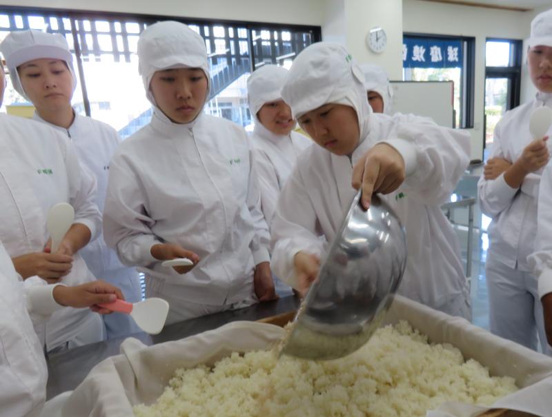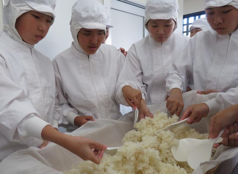 製麹(せいぎく) 投稿日時 : 2019/10/09 学校サイト管理者 10月9日、本校、食品科学科唯一のプラントによる焼酎製造が始まりました。今日は製麹に取組みました。米を蒸して麹菌を植え、適温を保った麹室(むろ)で培養します。食品科学科3年生の皆さん、品評会で合格点がとれるように丁寧に取組んでください。 タグ 食品科学科