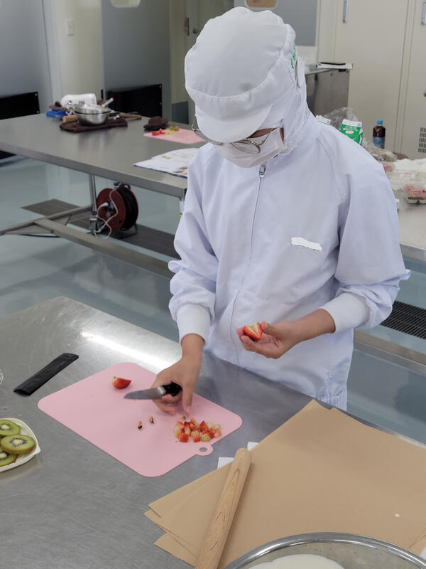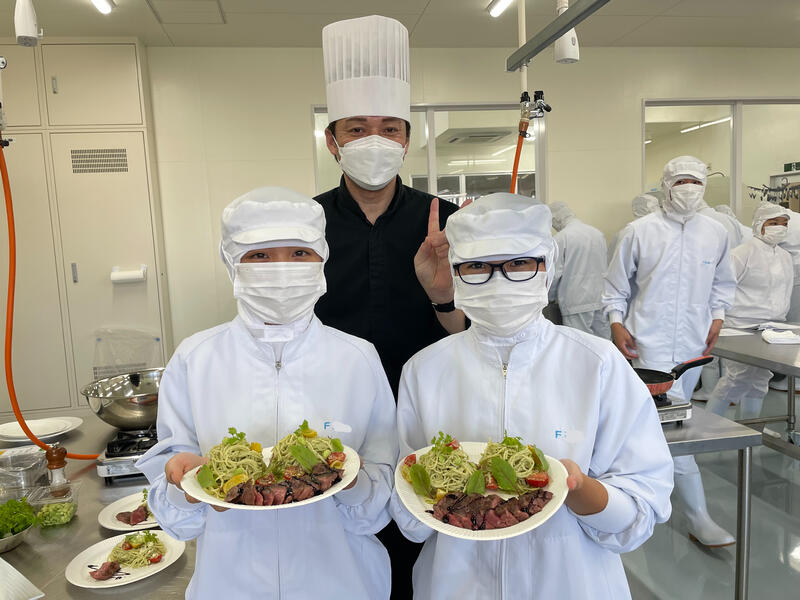 プロの技を間近で見て、調理・製菓の2部門をどちらとも体験し、楽しんで実習に臨みました