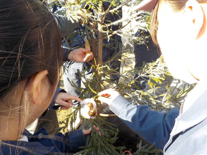 例年この時期はクリスマスリースを作製するのですが、生徒の発案によりクリスマスツリーの作製に挑戦しました!
