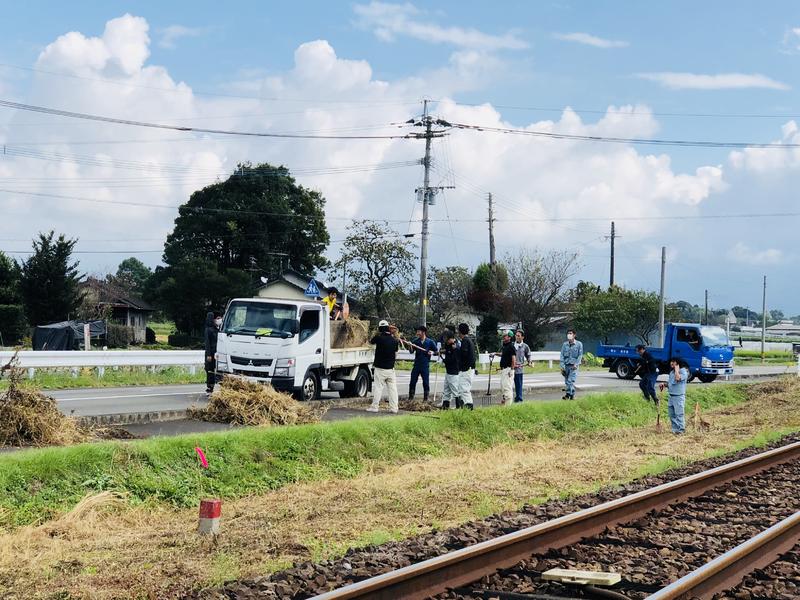 あさぎり町青年団の方々と共に、環境整備に汗を流す生徒の姿がありました