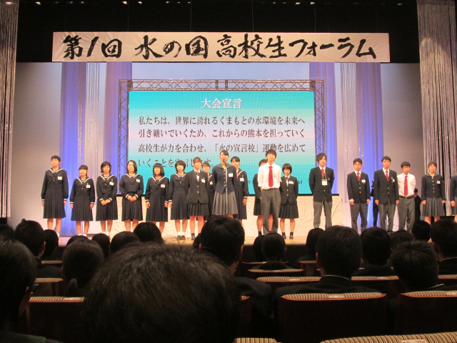 第1回水の国高校生フォーラム(2015/10/24) 投稿日時 : 2015/10/26 学校サイト管理者 第1回水の国高校生フォーラム(2015/10/24)10月24日(土)県立劇場で「第1回水の国高校生フォーラム」が行われ、南稜高校から坂本会長をはじめ、90名が参加。環境工学科の犬童君、谷山君、守屋君、稲葉君、渕上君、小川君らが「豊かな球磨川の恩恵」で発表。素晴らしい実践発表でした。高校生1000人参加の○×クイズが行われ、「初代 水のクイズ王」に守屋君が決定しました。「くまもと水の宣言校」第1号の認定証授与式があり、生徒会長坂本君が授与。ボランティア委員としても参加し、フォーラムを運営してくれました。12月26日(土)朝10時からTKUで放映されます。「豊かな球磨川の恩恵」発表○×クイズ 第2ステージ 4名が進出最終ステージ 守屋君が健闘守屋君 みごと優勝 1000人の頂点 初代クイズ王「水の宣言校」第1号 坂本会長へ認定証授与ボランティアスタッフ