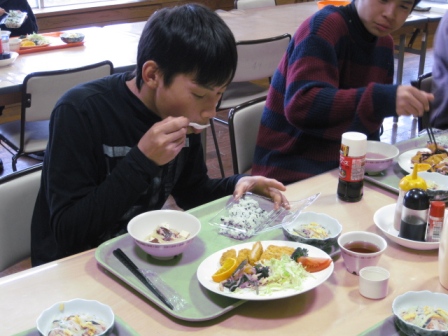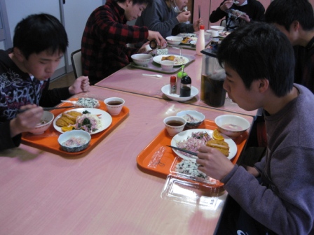 3月20日の昼ご飯に災害用アルファ米の試食会を行いました。災害用に開発された非常食で約5年間もの賞味期限があります。