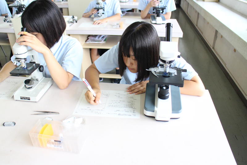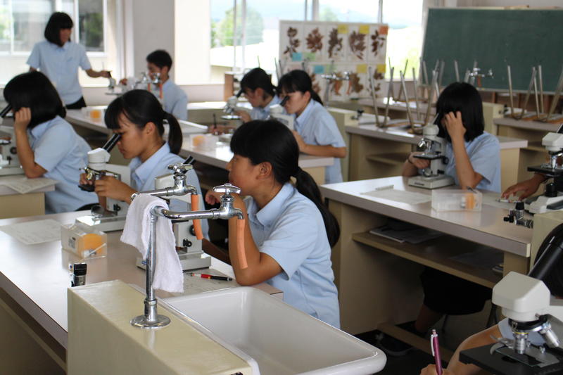 最新型の顕微鏡で実験しています 投稿日時 : 2019/10/03 投稿者6 科学と人間生活の時間に発酵食品に利用されている微生物の観察をしました。 納豆・漬け物の汁・ヨーグルト・ドライイーストの中にいる微生物の観察を 熱心に観察しスケッチを書きました。 1年総合農業科1組 1年総合農業科2組 1年生活経営科