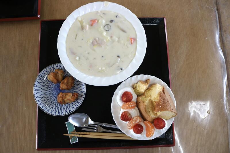 ホワイトシチューはトロッと、からあげはサクッと、シフォンケーキはしっとりと出来上がりました