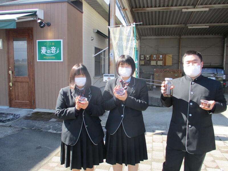 本校レーズンでカップケーキを作ってもらった「パン工房 麦の音」では新たな商品開発も約束してもらいました。