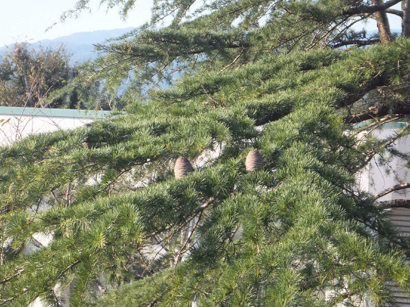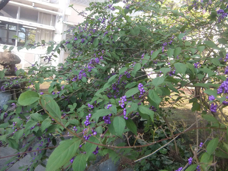 校内の風景 投稿日時 : 2020/10/09 学校サイト管理者 今年度になって校内でイソヒヨドリがきれいな声で囀っています。写真に収めたいのですが警戒心が強くなかなかうまくいきません。そんな中、校木のヒマラヤシーダーに目を向けるとかわいい松ぼっくりをつけていました。まるで木に止まったトトロみたいです。ヒマラヤシーダーの松ぼっくりは乾燥させると「シダーローズ」と呼ばれ、リースやアレンジ材料で人気です。また、ヒマラヤシーダーの根元には、ムラサキシキブが可愛い実を鈴なりにつけていました。