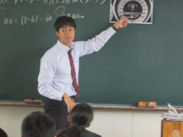 ・公開授業 数学(2018/10/25) 投稿日時 : 2018/10/25 学校サイト管理者 ・公開授業 数学(2018/10/25)10月25日(木)1限目、3年食品科学科で吉田先生が、数学Ⅱ、微分法と積分法「微分係数と導関数」の単元で、「スピードメーターの仕組みを知ろう」というテーマで公開授業を行いました。