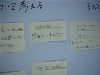 1年生進路LHR「なぜ働くのか?」食品科学科教室 投稿日時 : 2016/12/14 投稿者4 12月14日(水)1限目。1年生の進路LHRは、キャリア教育(職業観の育成)を実施しました。食品科学科では、担任の先生から本日の内容・目的説明を受け、まずは、自分の考えをまとめた後、6つの班に別れて話し合いに移りました。 自分の考えを付箋に記入し、班員に自分の考えを説明しました。それぞれの意見を出し、説明することができたようです。昨日(12/13(火))田舎のヒロインズ理事長でO2Farm代表取締役の大津様から講演をいただき、「体験から得るものとは」で学んだ「発表力、質問力が大切なこと」をおおいに生かせる時間でした。こんな発表がありました!「恩返し」「親孝行」 出された意見も付箋を使うと共通する意見どうしをまとめるのも簡単です。最後に、各班ごとの話し合いの内容を代表者が発表して終了しました。 授業後の感想には、「“働く事”にもそれぞれの価値観があって面白いと思いました。」 「なるほどと言う意見もあり、視野が広がった。」 「働くのは当たり前だと思っていたけれど、理由を聞かれるとすぐには答えられず、まだちゃんとわかってないんだと思った。」 「みんなの大切なもののために仕事をしているのかな?と思った。」 「働くのは、人のためや社会のためでもある。」(経済の話まで発展しました!) 「将来のためにもっと勉強をがんばりたい!」 「自分の夢を班の人に発表できてよかったと思う。」 キャリア教育(勤労観の育成)は、今回だけの授業ではなくこれから第2回、第3回と続きます。進路選択の基礎となるそれぞれの価値観が譲成されていきます。 この授業の続きは、生徒のご家族にも協力していただく予定です。どうぞよろしくお願いします。
