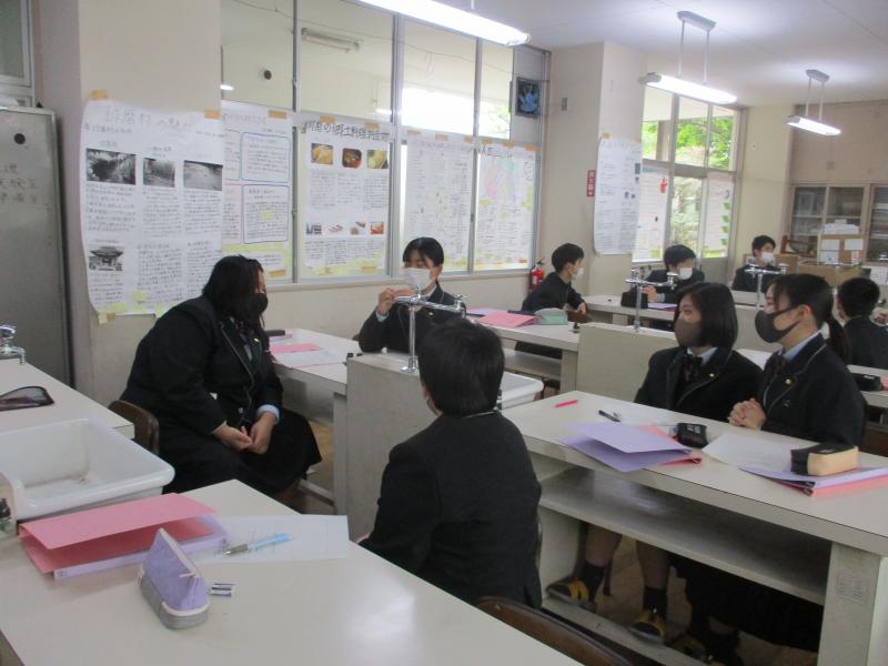 地域のことについてしっかり語れるようになろう、最終目標として学科集会でコースのことや学校のことを話してくれた先輩方みたいに集会や人前で発表できるようになろうということで、本日はあえてマイクを使った授業展開となっています。