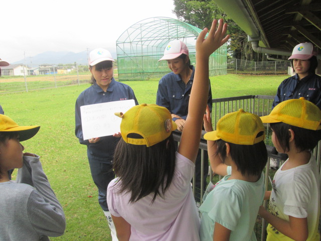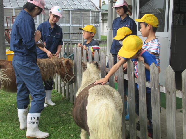 ・動物ふれあい 久米小学校 (2018/10/5) 投稿日時 : 2018/10/05 学校サイト管理者 ・動物ふれあい 久米小学校 (2018/10/5)10月5日(金)動物ふれあい体験で、久米小学校の1年生11名、2年生12名と先生方3名の合計26名が来校されました。生活経営科1年の生徒たちが「動物クイズ」を出したり、動物とのふれあい体験をしました。