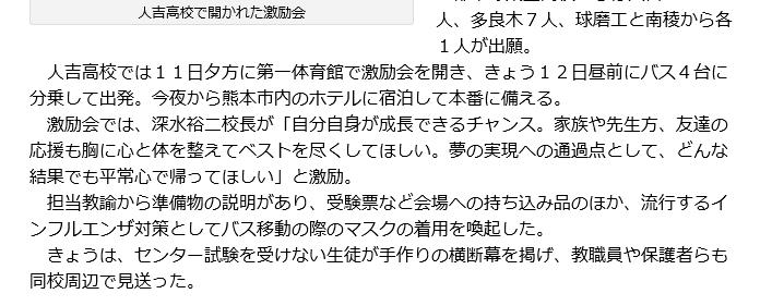 ・大学入試センター試験 人吉新聞 (2018/1/12)