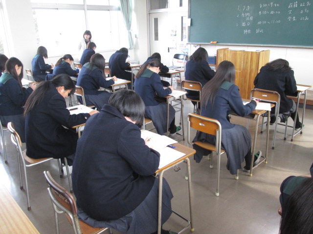 ・3年学年末考査 2日目 (2017/1/27) 投稿日時 : 2017/01/27 学校サイト管理者 ・3年学年末考査 2日目 (2017/1/27)1月27日(金)3年学年末考査2日目です。1月31日(火)まで続きます。南稜高校で受ける最後の考査です。みんな、頑張っています。生活経営科は実技試験です。