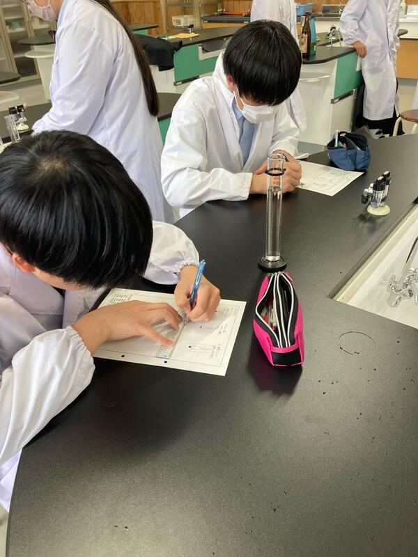 【食品科学科3年生】醸造・食品化学実験の様子 投稿日時 : 2023/04/21 投稿者5 本日5、6限目の前半組が醸造の実験でアルコール度の測定を行い、後半組が食品化学の実験でヨウ素デンプン反応を行いました。授業の様子をご覧ください。 まずは醸造です。