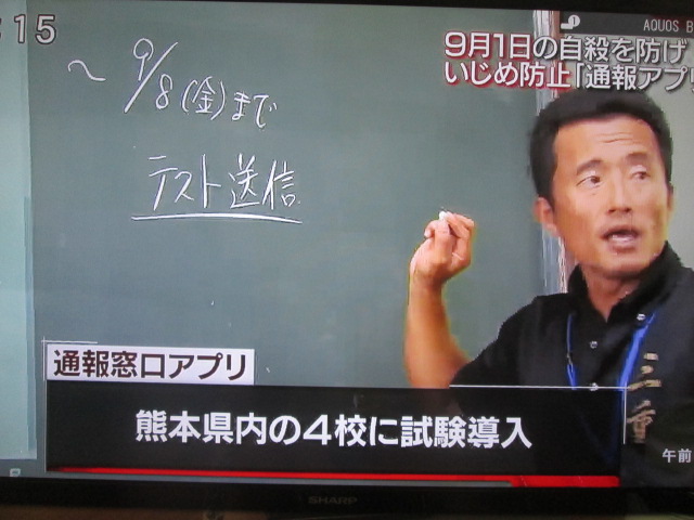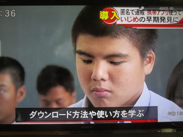 ネットいじめ等早期対応のための「通報窓口アプリ」説明会 投稿日時 : 2017/09/01 学校サイト管理者 本日(9/1)、熊本県教育委員会による「ネットいじめ等早期対応推進事業」の研究指定校(県内で3校)として、「通報窓口アプリ」の説明を、始業式の後と各HRで行いました。生徒の皆さんは、スマートフォン等へのアプリ搭載をお願いします。南稜高校は、「いじめのない、いじめを許さない、学校づくり」を更に目指します。 ※本校生徒会では、「いじめを許さない」宣言文を採択しています。以下は、テレビで放映された映像です。【体育館での説明風景】 【1年1組HRでの説明風景】 【1年1組HRでの説明風景】 【生徒会長 戸澤さんへのインタビュー】【生徒会執行部の皆さんも、早速アプリを搭載しています。】 取材の様子