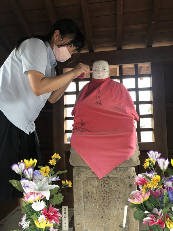 地蔵尊の「前掛け」と「マスク」を製作し、奉納する活動を行いました