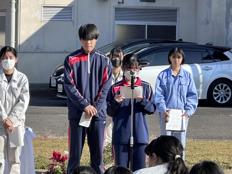 各科代表挨拶として4人の挨拶が行われましたまず3年普通科大坪さんの挨拶