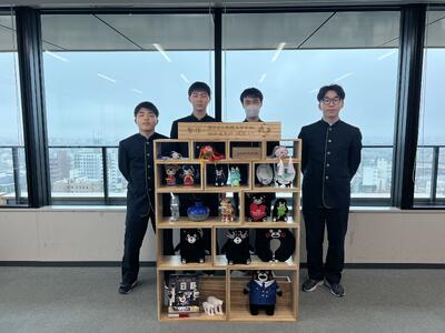 環境コース林業専攻木工班の生徒が、くまモングッズ展示用什器の贈呈式に出席しました。