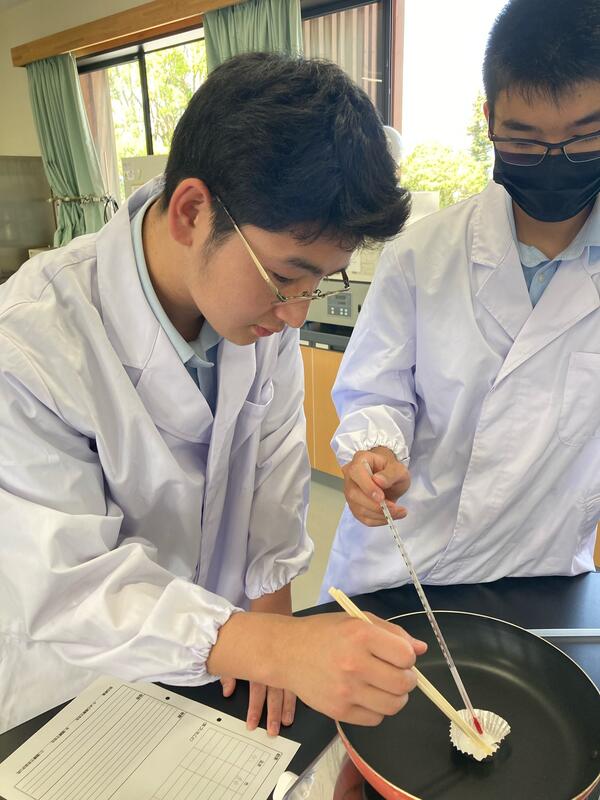 【食品科学科3年生】醸造・食品化学実験 投稿日時 : 2022/05/27 投稿者5 今週の醸造の授業では、「フラスコ焼酎の製造」に入ります。また食品科学の授業では「カラメル化」について学びました。今回も楽しそうに学ぶ生徒の様子をご覧ください。 まずは醸造の授業です。 次に食品化学実験です。 「カラメル化」を学んだあとは「べっこう飴」を作りました。 感想を聞かせてくださいね。 タグ 食品科学科