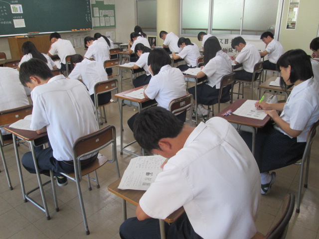 ・期末考査 3日目 【その1】 (2016/7/4) 投稿日時 : 2016/07/04 学校サイト管理者 ・期末考査 3日目 【その1】 (2016/7/4)7月4日(月)期末考査3日目。明日まで、期末考査です。全校生徒、問題に真剣に取り組んでいます。
