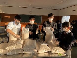 、全校生徒、職員にお米を2合ずつ配布いたしました。
