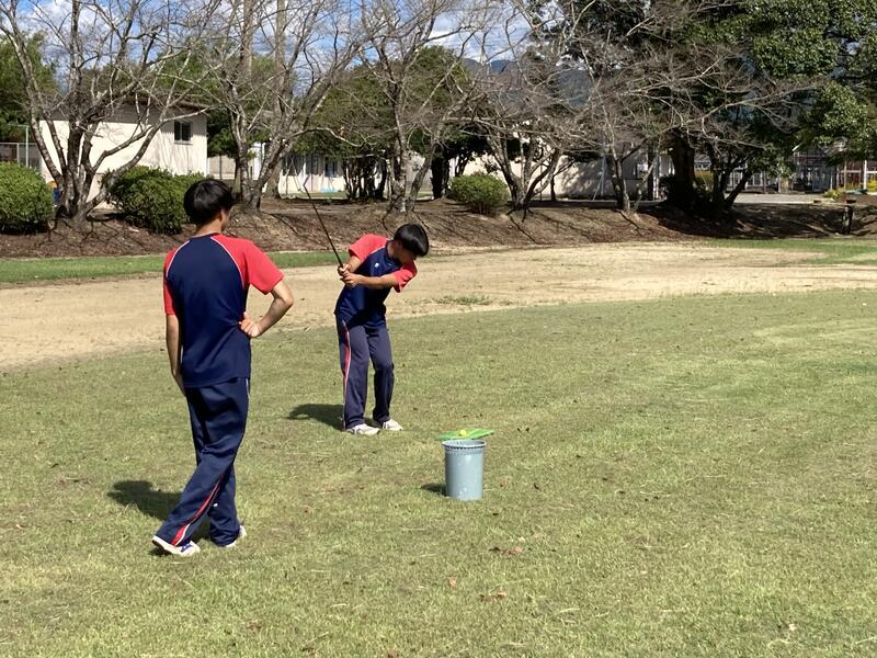 【3年体育コース】新たに… 投稿日時 : 2024/09/12 承認者 3年体育コースはゴルフに取り組んでいます。 適度な運動強度とルールやマナーを守りながら自然や仲間と交流するなど生涯スポーツ適性に優れており、最近は若い世代でも始める人が多いと聞きます。 多様な運動経験をすることや新たなスポーツにチャレンジすることで生涯にわたる豊かなスポーツライフに繋げて欲しいと思います。 今日は近い距離のターゲットを狙ってアプローチの練習をしました。 実際のコースでプレーすることを目標に練習していきます!
