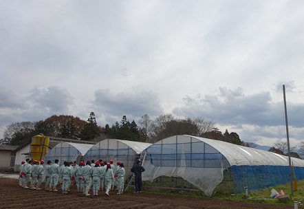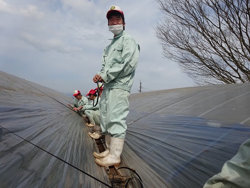 ブドウのハウス張り 投稿日時 : 2016/03/16 投稿者2 総合選択B「グリーンライフ」の授業で、ブドウのハウス張りを行いました。こちらはビニールを張る前の写真。 ビニールを広げて引っ張り上げていきます。頑張れ男子! 女の子達も頑張ってます!ビニールを張ったらハウスに登ってヒモを結ぶ作業です。意外と高さがあって怖いんですが、みんな涼しい顔で作業しています。 無事ハウス張り終了!ありがとうございました!今年のブドウもおいしくできることでしょう