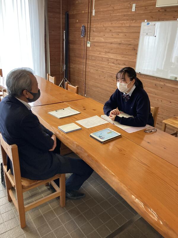 課題研究班の中でマーケティングを担当する渡邉さんが、カッセジャパンの髙沢様へ質問をしていました。
