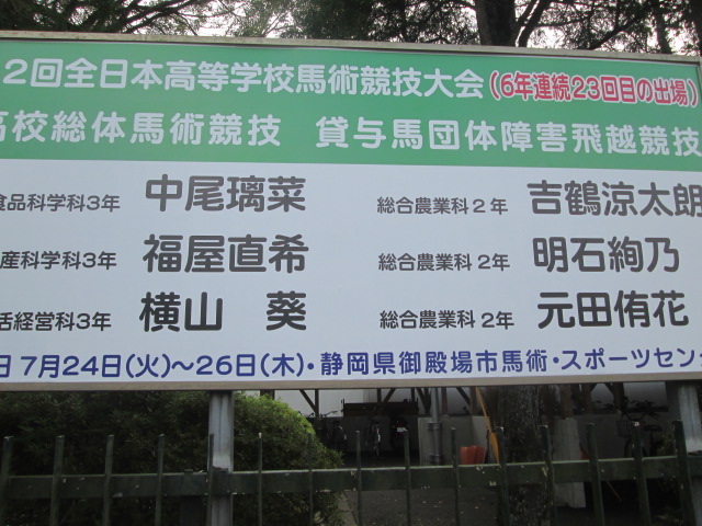 ・馬術 看板設置 (2018/9/11) 投稿日時 : 2018/09/11 学校サイト管理者 ・馬術 看板設置 (2018/9/11)準優勝 第52回全日本高等学校馬術競技大会(6年連続23回目の出場) 優勝 県高校総体馬術競技 貸与馬団体障害飛越競技の看板を設置しました。