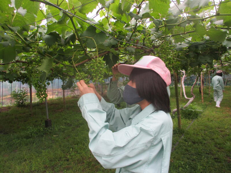 ブドウ摘粒【生活経営科課題研究 農業班】 投稿日時 : 2022/05/30 投稿者2 ブドウの摘粒実習を行ないました。粒を大きくし、房の形を整えるため、小さい粒、下向きの粒、内側の粒を落とします。 集中力が要求されます。