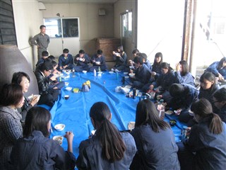 セレモニーの後、各クラスに分かれて材料を仕込み、豚汁、ご飯をつくり、いただきました。好天にも恵まれ、各クラスごとに味付けなどにバリエーションがあり、有意義な収穫感謝祭となりました。